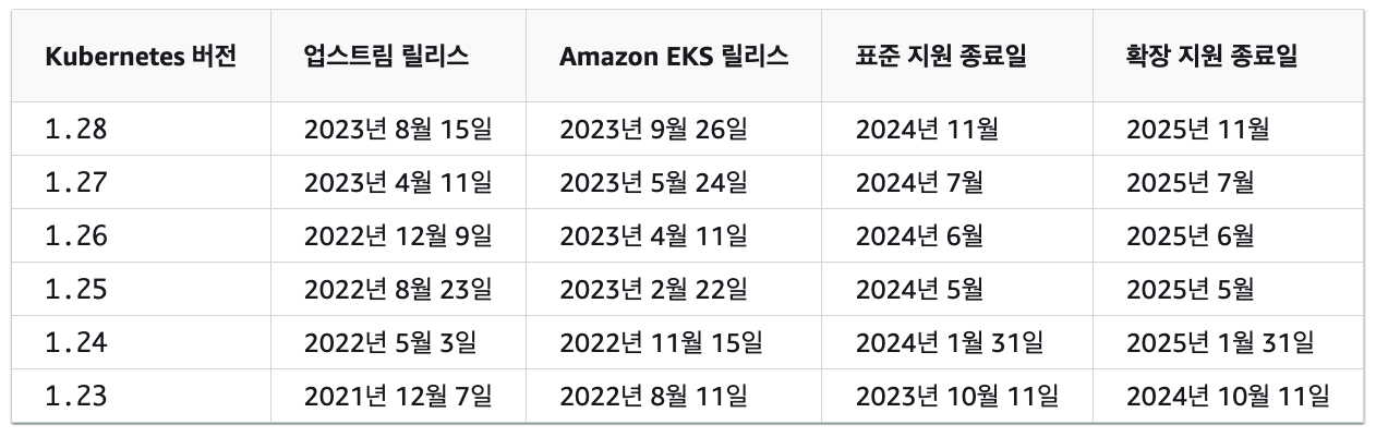 ๋ฃ๊ฐ ๋๋ฉด EKS ํด๋ฌ์คํฐ๋ ํ์ฌ ์ง์๋๋ ๊ฐ์ฅ ์ค๋๋ ๋ฒ์ ์ผ๋ก ์๋ ์