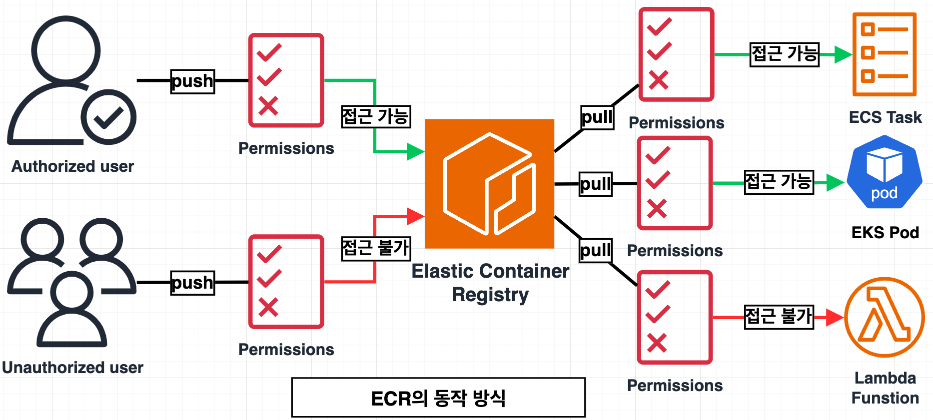 - ํ๋ผ์ด๋น ๋ ํฌ์งํ ๋ฆฌ๋ IAM ๊ธฐ๋ฐ ์ธ์ฆ์ ๊ฑฐ์ณ์ผ ์ด๋ฏธ์ง๋ฅผ ๊ฐ์ ธ์ฌ ์ ์์ต๋๋ค.