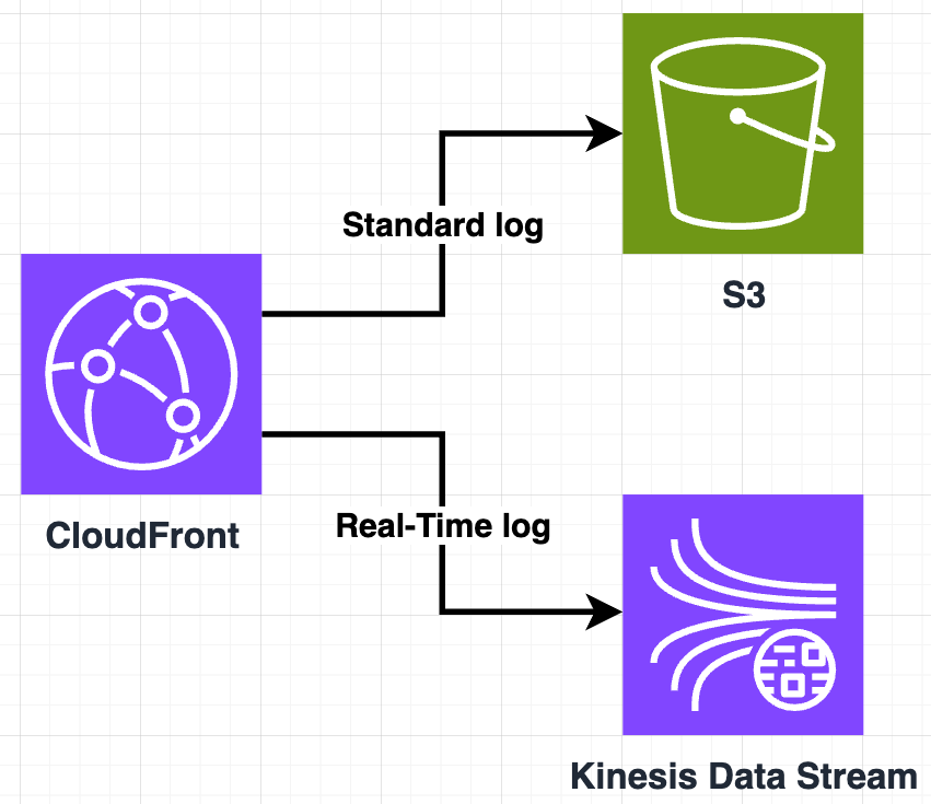 - Standard log๋ S3๋ก ์ ๋ฌ๋๊ณ Real-time log๋ Kinesis Data Stream์ผ๋ก ์ ๋ฌ๋ฉ๋๋ค.