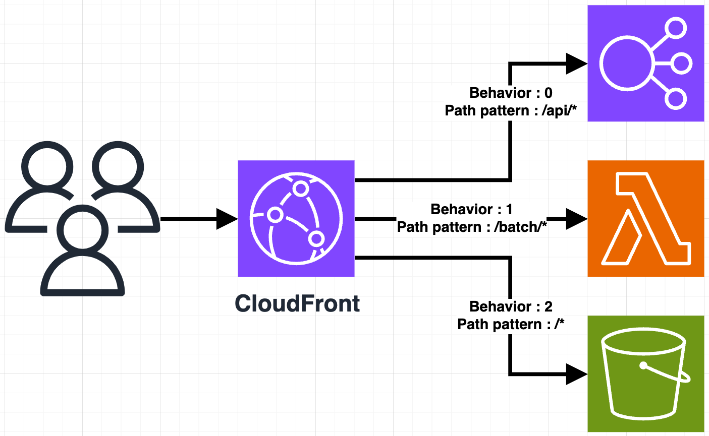 - Cache behavior๋ฅผ ์ค์ ํ์ฌ URL ๊ฒฝ๋ก ํจํด์ ๋ฐ๋ผ์ ๋ค์ํ Origin์ ์ง์ ํ ์ ์์ต๋๋ค.