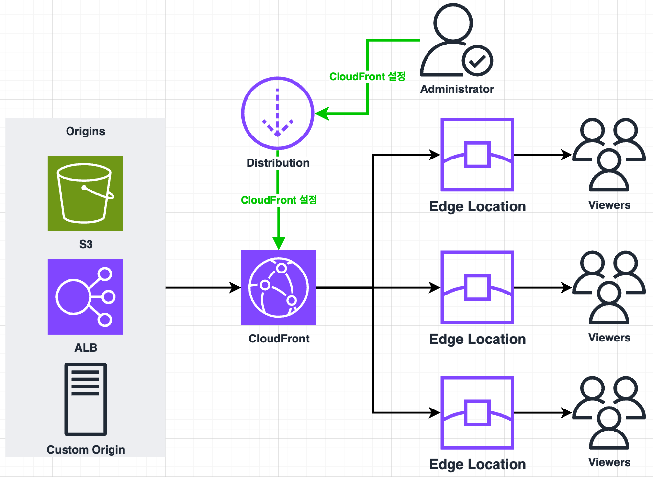 - Origin์ ์ปจํ ์ธ ๊ฐ ์ ์ฅ๋๋ ์์น์ด๋ฉฐ CloudFront๊ฐ ์ฌ์ฉ์๊ฐ ์ ๊ณตํ ๋ฐ์ดํฐ๋ฅผ ๊ฐ์ ธ์ค๋ ๊ณณ์ ๋๋ค.