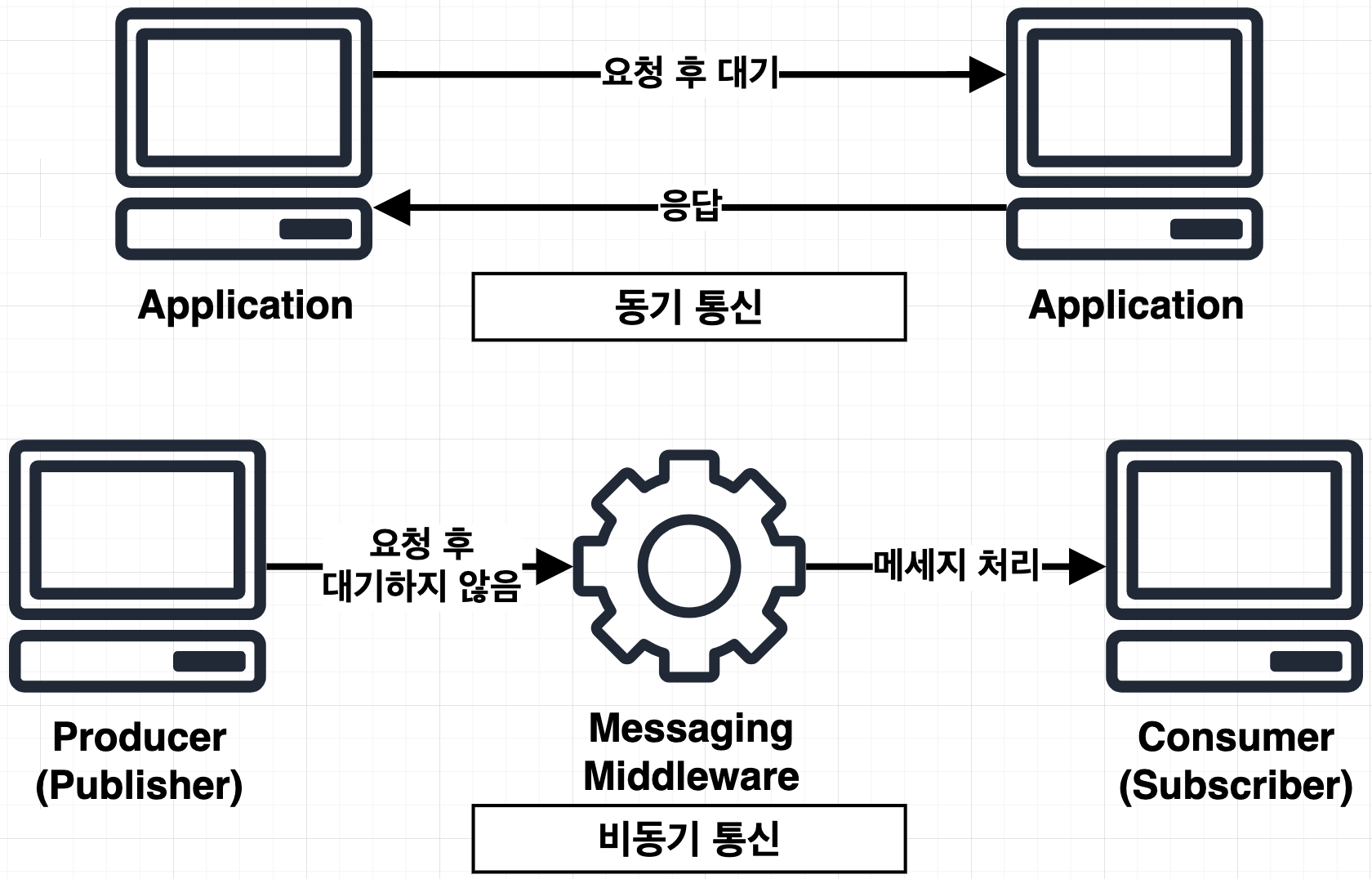 - ์ดํ๋ฆฌ์ผ์ด์ ์ ํต์ ๋ฐฉ์์๋ ํฌ๊ฒ Synchronous communication(๋๊ธฐ ํต์ )๊ณผ Asynchronous communication(๋น๋๊ธฐ ํต์ )์ด ์์ต๋๋ค.