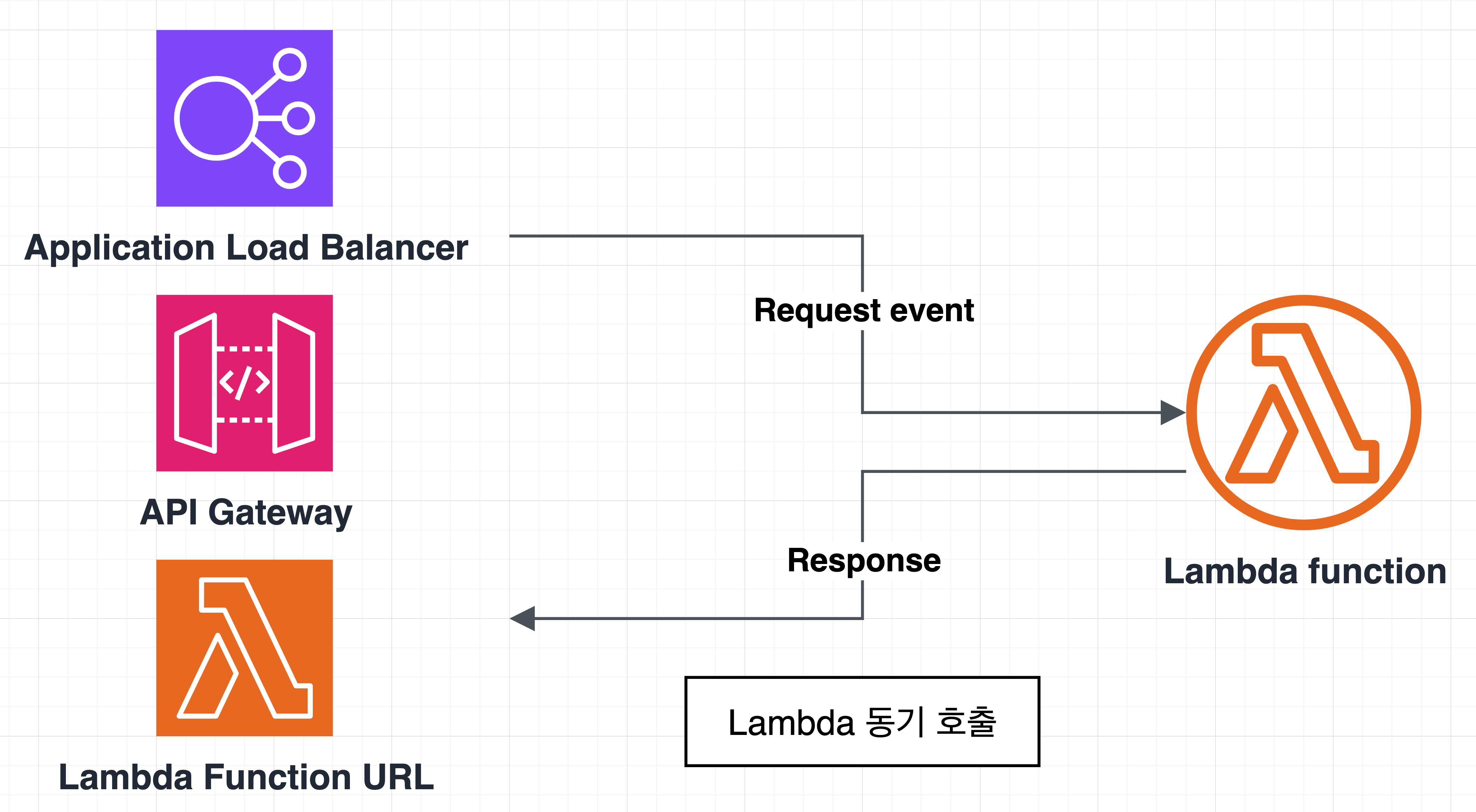 - Application Load Balancer, API Gateway, Cognito등과 통합하여 람다를 Synchronous invocation 할 수 있습니다.