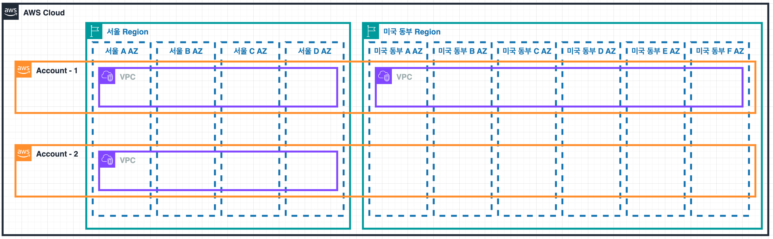 - ์ฌ์ฉ์๋ AWS Account ๋ด์ ์ฌ๋ฌ Region์์ ๋ฆฌ์์ค๋ฅผ ์์ฑํ ์ ์์ต๋๋ค.