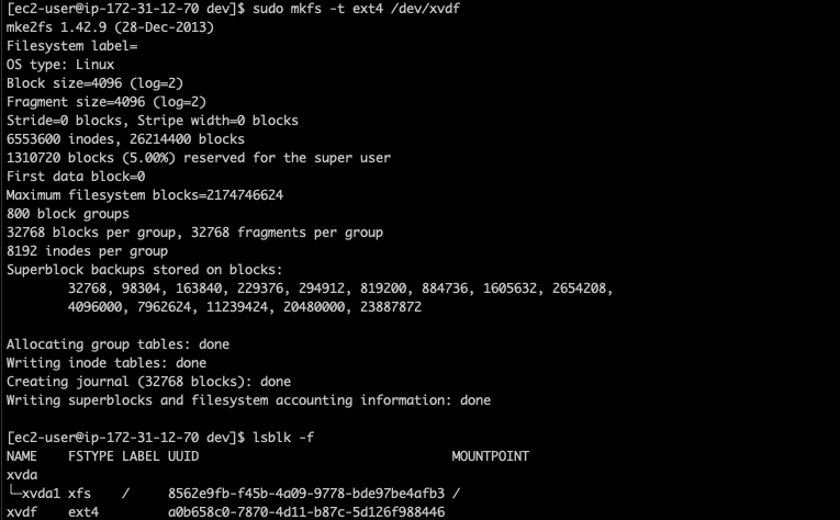 장치명/dev/xvdf는 변할 수가 있기 때문