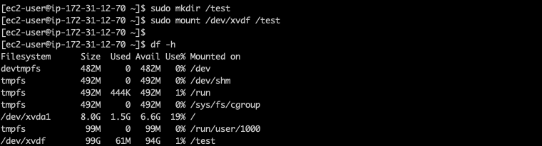 in-use상태) lsblk로 EBS 연결 확인
