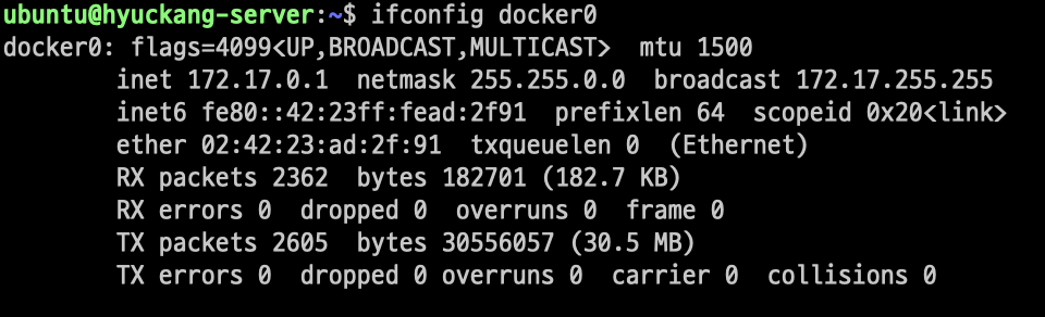 docker network disconnect)docker network disconnect [OPTIONS] NETWORK CONTAINER # Disconnect a container from a network # -f, --force : Force the container to disconnect from a network # ex) my-net ๋คํธ์ํฌ์์ container1 ๋คํธ์ํฌ๋ฅผ ๋ถ๋ฆฌ docker network disconnect my-net container1๋์ปค ๋คํธ์ํฌ ์ ๋ณด ํ์ธ (