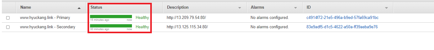 - Primary EC2를 정상화 시켰고 Primary health check가 healthy로 돌아왔습니다.