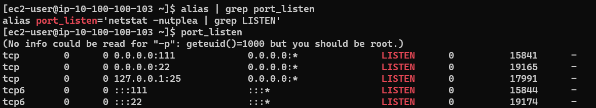 alias ps_java='ps -ef | grep java' alias port_LISTEN='netstat -nutplea | grep LISTEN'
